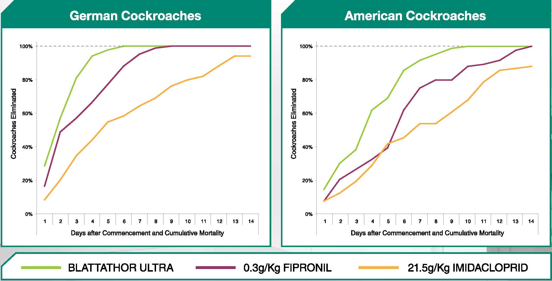 BLATTAHOR ULTRA with its Viral Feed Through Effect™ ensures supersonic knockdown of cockroaches. During tests against comparable gel cockroach baits BLATTATHOR ULTRA shot them down with lightning fast speed.